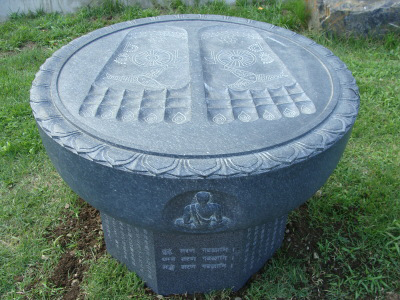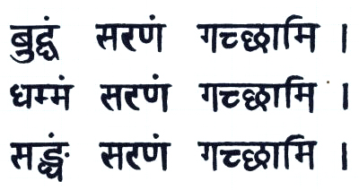 仏足石の台座にはパーリー語の三帰依文をデーバナーガリー文字で表しました。