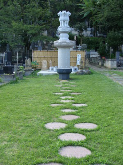 手前がインドの仏跡お砂踏み、その終着点として仏足石が祀られています。